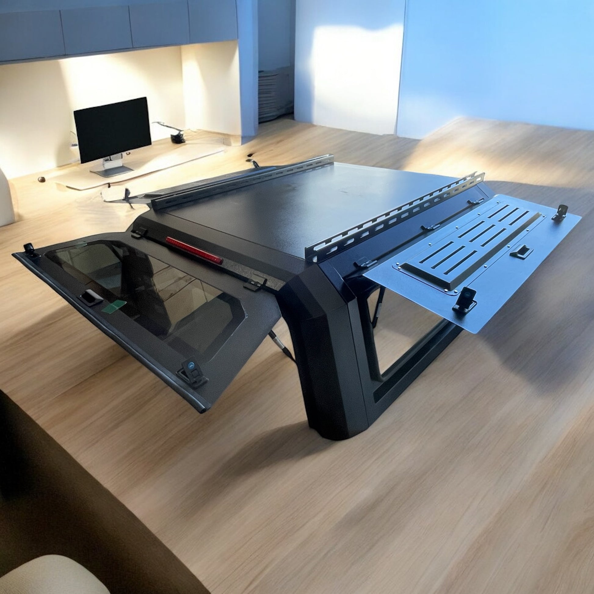 Functional Design – Dual gull-wing lift-up doors with gas struts